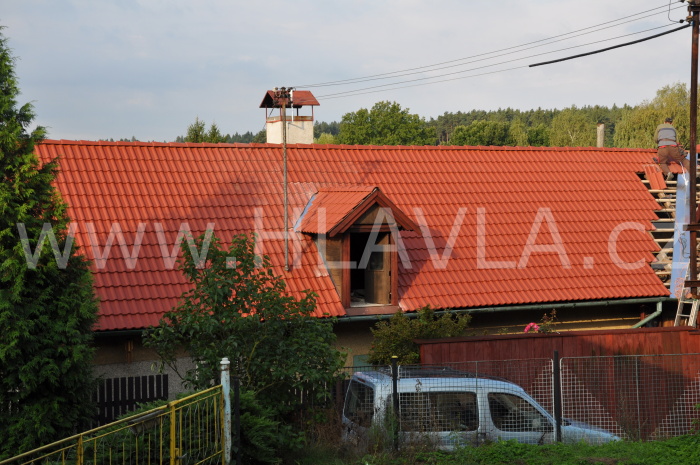 Rekonstrukce střechy s vyrovnáním krovu, výměnou latí a tašek