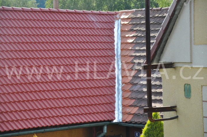 plechování úžlabí. V případě, že je střecha v kosém úhlu, provedeme i oplechování